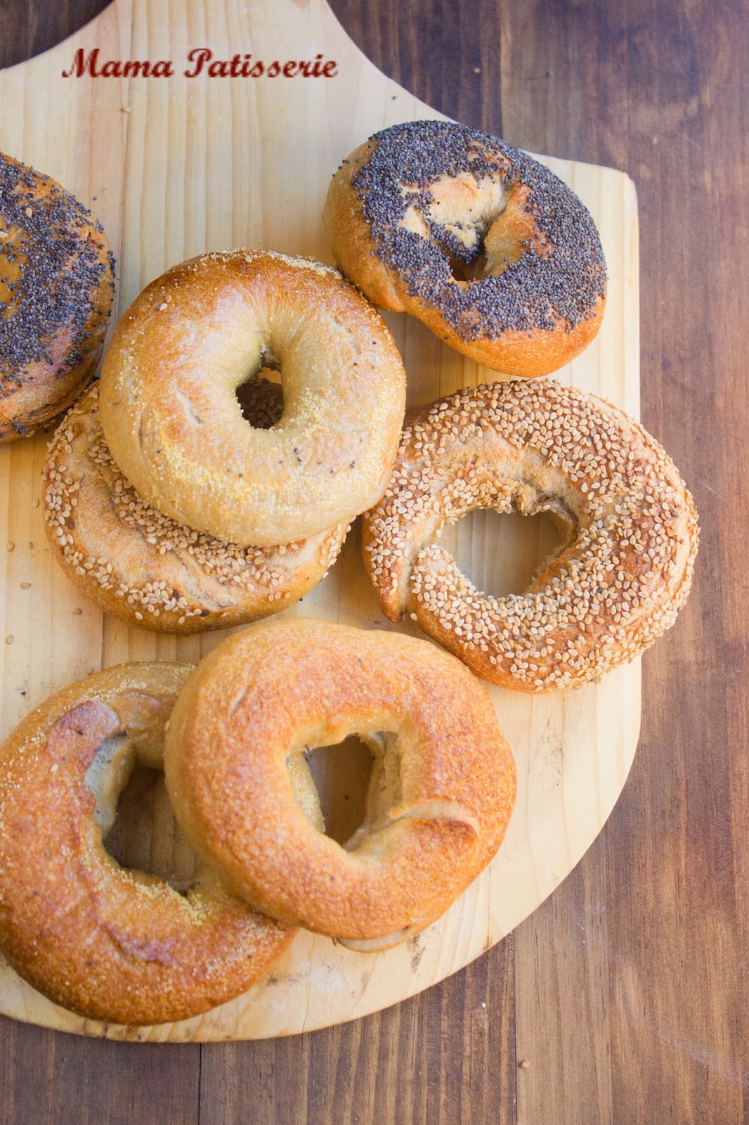 6. Cocción: Cuece los bagels a 260º C. Mete las bandejas con los bagels en el horno y transcurridos 3 o 4 minutos dales la vuelta y déjalos otros 15 minutos. Sácalos y déjalos enfriar encima de una rejilla.